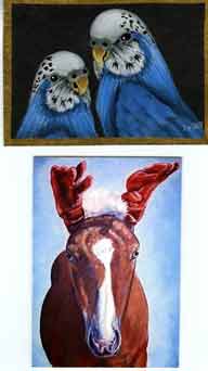 Top left by J.K Barrack, titled "African Grey Parrot".