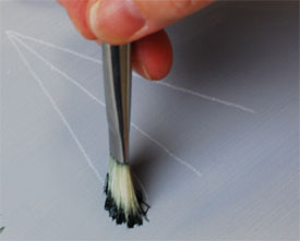 Your first step is to put the brush in water to plump up the bristles of the brush. A 10 minute soak will do the trick. Blot it well.