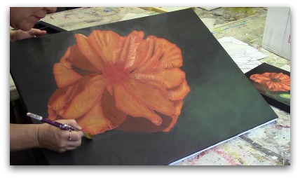 But on a serious note, in this video I build layers of color to push some of the petals back and to bring others forward. The use of cast shadows creates tension and will eventually make the painting appear to be almost "high definition". It's a cool effect.