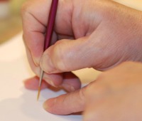 Q. Moira from North Carolina asked, "I can never get very fine lines when I use my liner. What am I doing wrong!?" A. When I'm teaching in my studio I see people struggle with this all the time. If you want fine, long, continuous lines first choose the right length brush hairs. You'll need a long Liner for lengthy work like scrolls and curly cues. You'll need a mid-length line for smaller work like filigree. MOST IMPORTANTLY, don't hold the brush like you would a pen. The brush needs to be perpendicular to your surface. Just the very tip of the brush touches the painting. Rest on your pinky rather than the heel of your palm. Your pinky is for support and your shoulder is what moves the brush...not your wrist or your arm. And remember to breathe! If you don't breathe you'll get shaky lines. And lastly, practice, practice, practice.