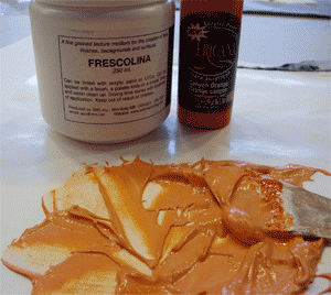 I decided to use Frescolina (a texturizing stucco medium) for my