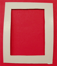 Take a piece of sturdy cardstock measuring about 4-inches x 5-inches (10cm x 12cm). Cut out a window in the center of this card measuring 2-1/2-inches x 3-1/2-inches. This will be your template/viewfinder. ATCs cannot be smaller or larger than that measurement.