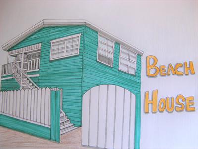 A beach house is a home I would want if I had bags of money. This is done with Tombow colored markers.
