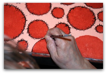 I am making progress! The circles don't have perfect edges and the paint is not perfectly opaque. But I don't care. There's more to come.