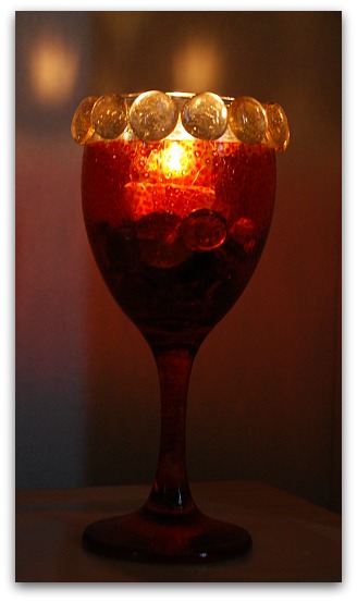 I added clear beads inside the crackle glass vase and added a lit votive. The photo does not do it justice!