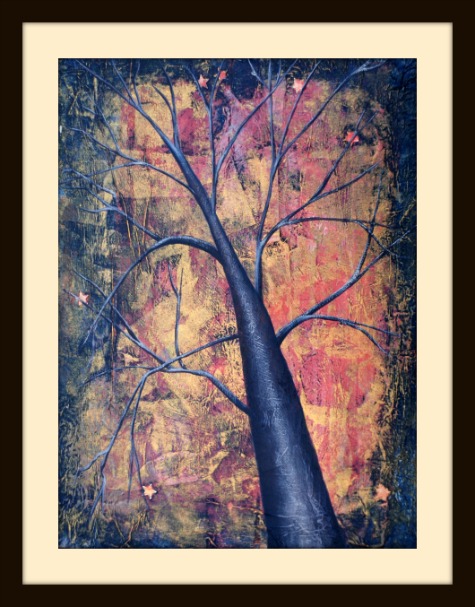 Here's the same tree (smaller scale) painted on an MDF plaque. I've added little red birds for fun.