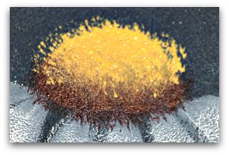 On the dirty brush, pick up a bit more Marigold, blend it well in the bristles. Wipe it dry on a clean, dry paper towel. Repeat the dry brushing, only this time don't go out as far.