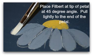 Here I've basecoated a daisy center with Marigold and the petals were stroked in with French Grey Blue.