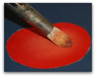 I'm using DecoArt Americana acrylics for this demonstration. Here I have a red fruit for my demo. Pick up Primary Red and a bit of Marigold on the Domed Round and simply brush mix to a lighter shade than the base coat.
