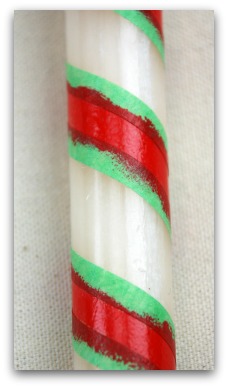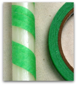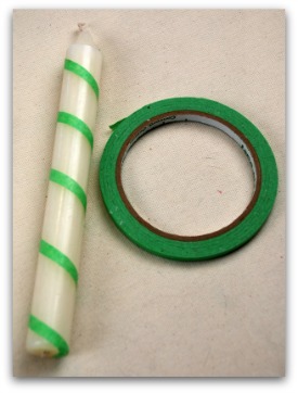 Apply the tape starting at the top of the candle and wind your way down doing your best to keep the tape evenly spaced.