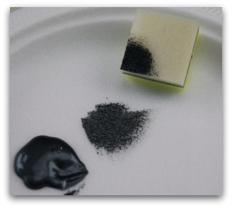 Pick up a little Black Pearl on a small section of a clean dry sponge. Dab it on the foam plate so there's not too much paint on the sponge.