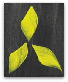 Using the #6 Flat and Chartreuse, make clusters of 3 S-Strokes (leaf strokes) randomly on the candle. Make as many as you like, being careful not to get your fingers on the wet leaves.
