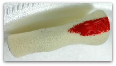 Pour a dollop of Lipstick onto your disposable foam tray and have a clean dry cosmetic sponge ready.