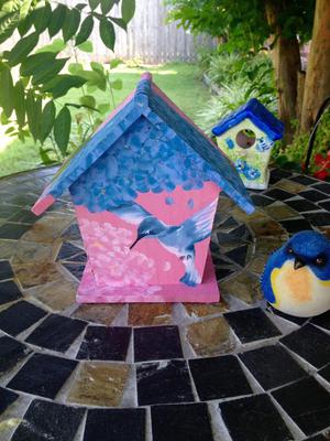 Just love my new hobby of hand painting birdhouses. This is one I made for my Grandma featuring her two favorite things - hummingbirds and hydrangeas. I use acrylic paints and free hand paint everything. Love to see everyone else's ideas on here as well! What a wonderful site!