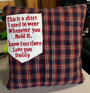 Hi I made this memory pillow for my Daughter- In-law because she lost her Dad to cancer.