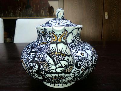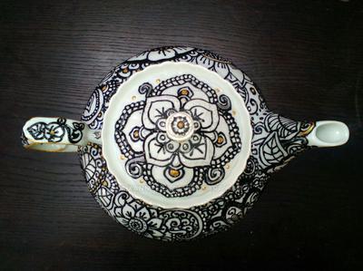 More from Marabu! This is my hennah style white ceramic teapot, it is done with Marabu 3D relief paste. Simple black line work with gold and silver accents.