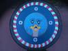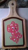 He is a vintage embroidery pattern done in acrylics on a wood cutting board