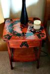 In an attempt to take art off the canvas and on to other "paintables" I took an unfinished table, stained it, and wood burned an outline I had drawn. …