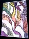 I made lines from top to bottom then went around making all different shapes making sure the line connected to where I began.
