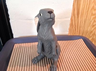 He's 11 1/2" tall. He's made of resin. And I painted him with acrylic paint. Acrylic paint is the only paint I ever use. With the plastic sealer, I have to seale the resin with. I can only use acrylic paint. Thank You Tammy