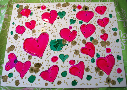 At the time of this project it was a few days before Valentine's day, so I had fun drawing hearts, circles, squiggly lines and dots. You could do any shapes that come to mind as shown in the picture above.
